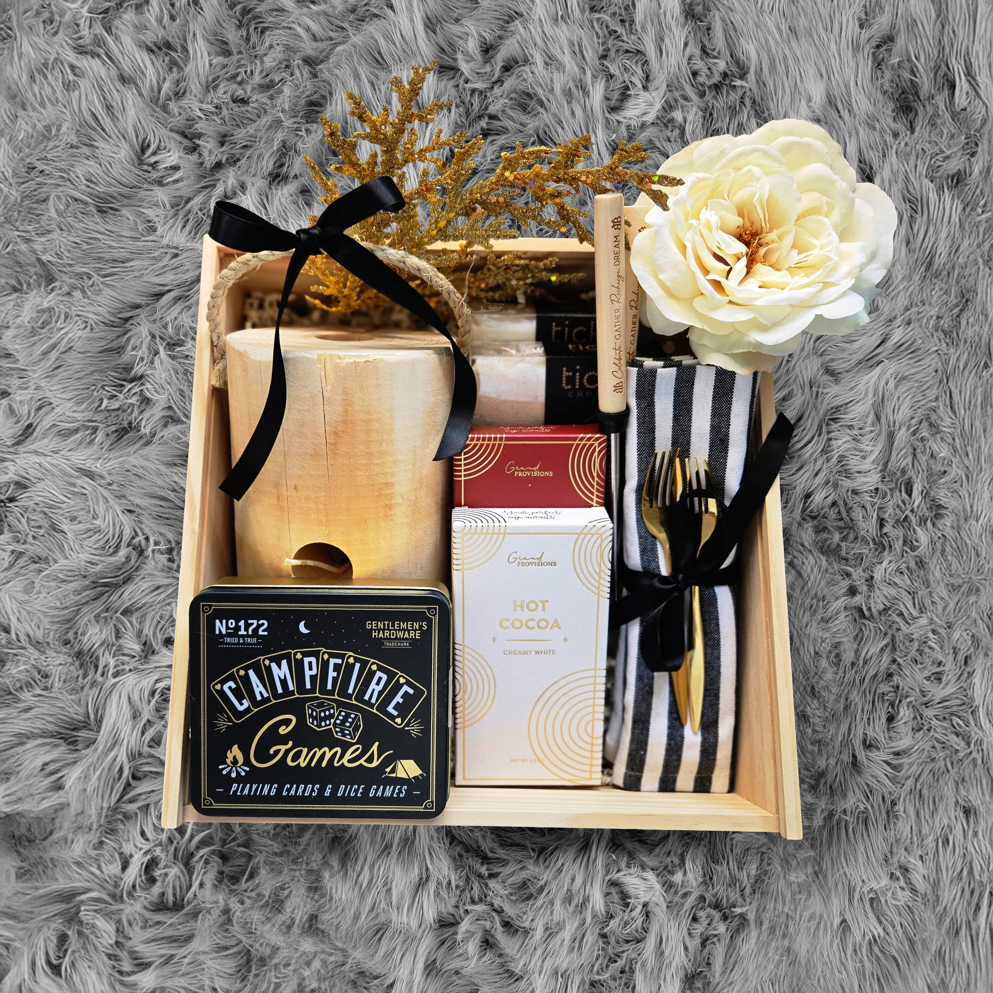 - Beautiful Tin of Campfire Games with Playing Cards, Dice, and more